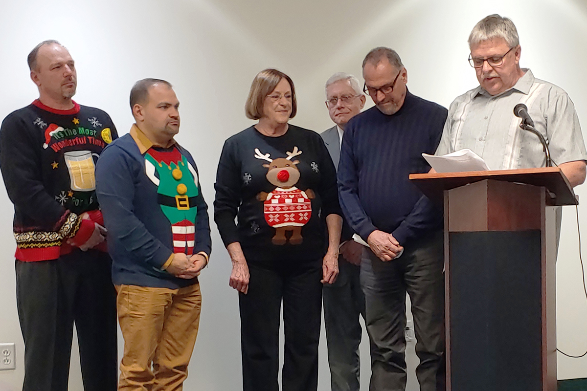 L to R: Greene County District 1 Legislators Michael Bulich, Matthew Luvera, Linda Overbaugh & Jack Keller, Bob Hoven (Cultivate Catskill) Jim Dymond (Greene County Planning Board)