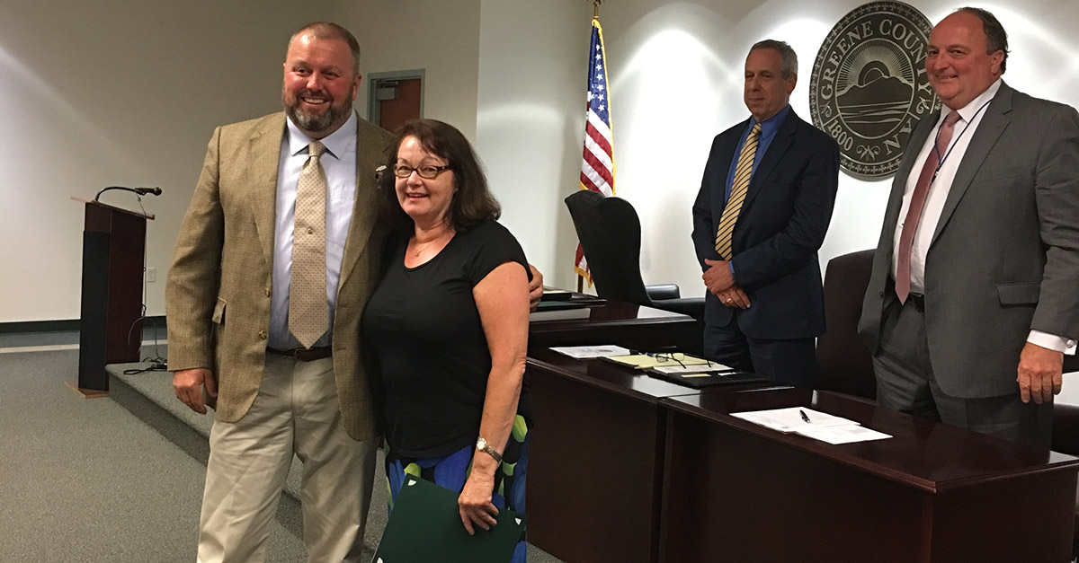 The Wednesday, June 20th session of the Greene County Legislature honored two Greene County Employees: naming Amy Block as 2018 Employee of the Year and Margaret “Maggie” Graham as the 2018 Chairman’s Award Winner. Both honors were delivered by the Chairman of the Legislature – Kevin Lewis of Greenville, NY.
