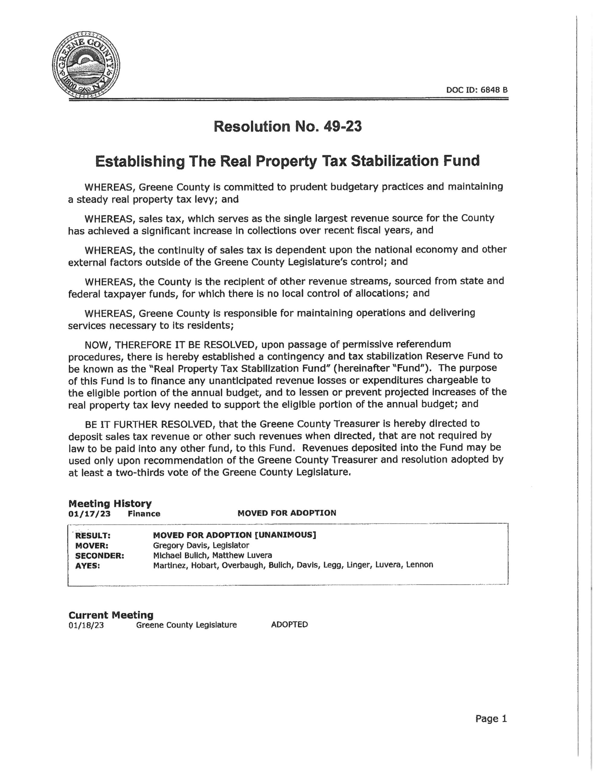 Real Property Tax Stabilization Fund-Permissive Referendum