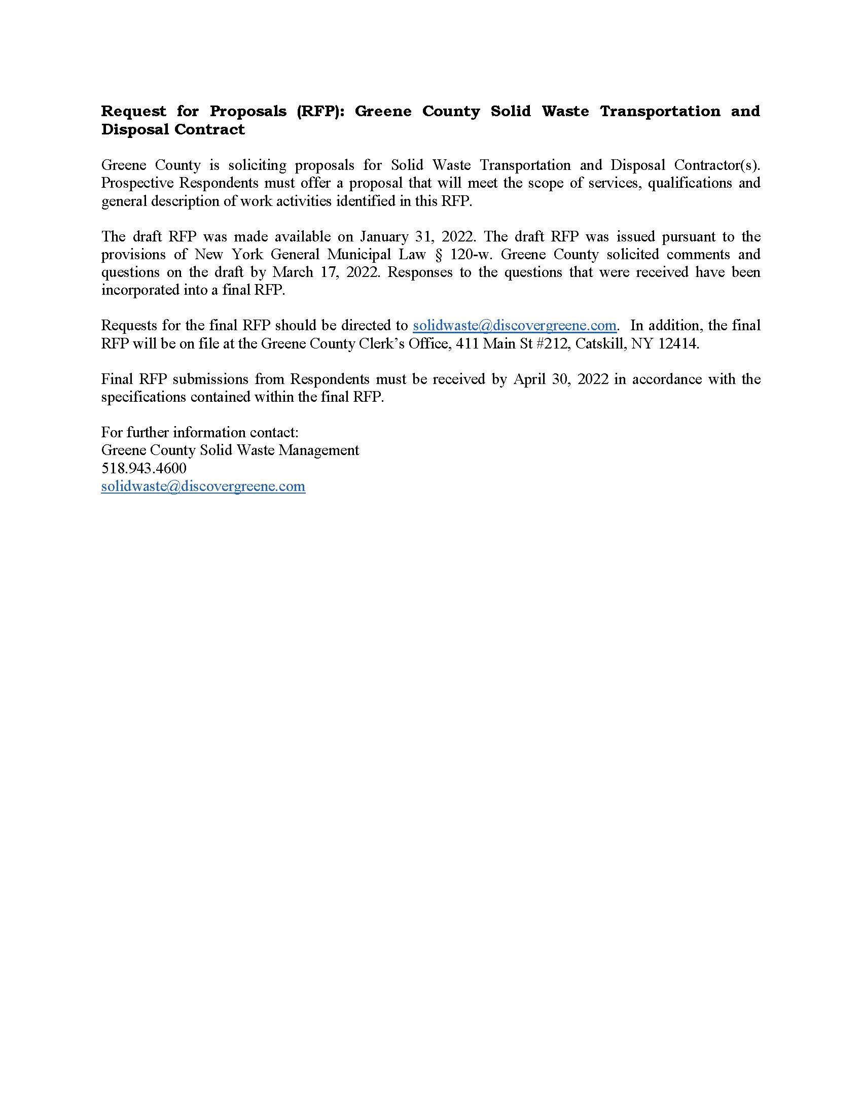 Request for Proposals (RFP): Greene County Solid Waste Transportation and Disposal Contract